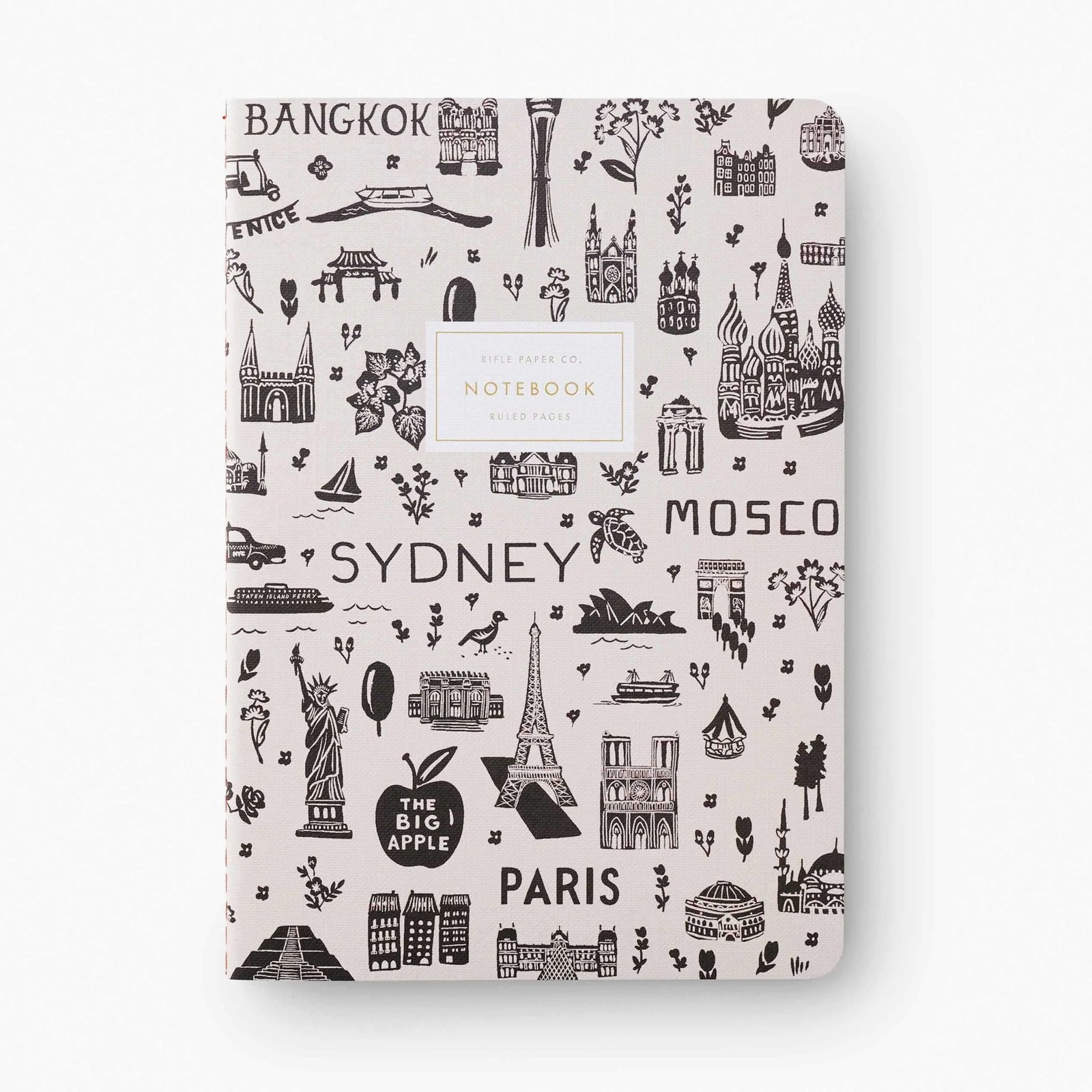 Trío de libretas con temática de viajes, ideales para tomar notas del día a día en el trabajo o en casa. Se venden juntas o por separado.